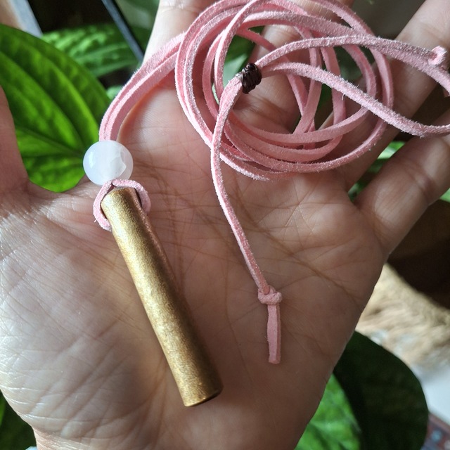 ◎バリ島から発送致します。 金色に輝くマスウリ(ゴールドウリ)と約10mmの芯ケオンビーズを組み合わせたスエード紐ネックレス♫透明感の芯ケオンがとても綺麗です✨ ★ウリは海中の珊瑚の木。ブラックをはじめ、ホワイトやグリーン、レッドなどなど何種類もあり、インドネシアでは魔除けや対人トラブルから身を守る自然の御守りとしても身に付けられています。 ☆マスウリ(ゴールドウリ)☆ 自身が待つ才能を強力にサポートし、金運、財運に効果があると信じられています。 ☆ケオン☆ 運気を高め、前向きな行動に導き、願望を実現にする為にサポートしてくれると言われています。 ▫️サイズ▫️ マスウリ(ゴールドウリ) 約46mm×9mm 芯ケオンビーズ 約10mm 重量 約6.5g スエード紐の色: ピンク系 ストラップの長さ: 約86cm(調節可能) ※ ビーズは一つ一つ職人さんの手作業で行っている為、多少の歪みやサイズのばらつきがあります。また天然のひび割れや色ムラ、小さなキズ、黒い点などがある場合がありますがご理解頂きたく思います。 ◉商品をより長くご愛用いただく為、プールや入浴時は商品を外していただく事をお願いしております。また外された後は柔らかい布で汚れや汗など拭き取って頂けたらと思います。水分が残ると石が劣化し、輝きがくすんでしまうので注意して下さい。 ◉ケオンの性質 波に洗われた殆どのケオンにはナチュラルクラック(自然にできたひび割れ)があり、ケオンが成長過程で海水から取り込んだ砂などが所々に混ざっているものもございますが、こちらは天然由来のものとしてご理解していただき、これも含めて好きになっていただけたらと思っています。 ▪️細かな点にご不安を感じられる方は、無理のないご判断としてご購入をお控えいただけますと幸いです。 ★入魂儀式とケオン、ウリについて詳しくはサイト内に記載してありますので、そちらの方でご覧ください。 ★撮影状況や光の当たり具合、カメラの角度、ご覧になる環境(PCのモニターやスマホの画面)などにより、色合いが異なって見える場合があります。 《発送について》 こちらの商品はインドネシアのバリ島からの発送となります。発送方法は追跡番号付きの7日〜10日で到着するeパケット国際郵便を予定しています。また、インドネシアの祝日や祭日など重なった場合、到着が遅れます。 ★海外発送の為、ご購入の際、必ず備考欄にフルネームのアルファベット表記をお願い致します。