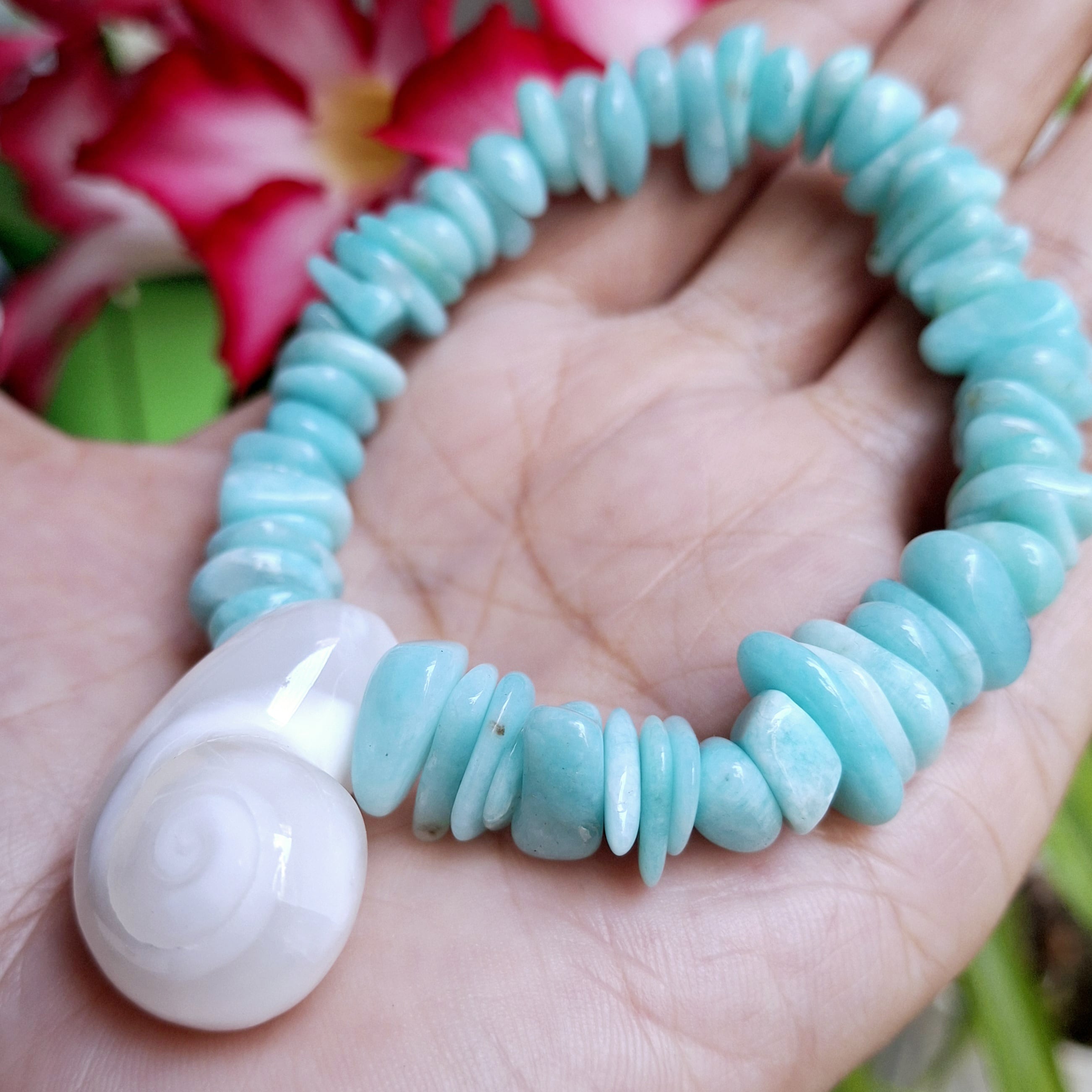 アマゾナイトのさざれにスパイラルケオンをドーンとワンポイントでお付けしたブレスレット♪♪アマゾナイトの優しいアクアブルーに癒されますね♥️