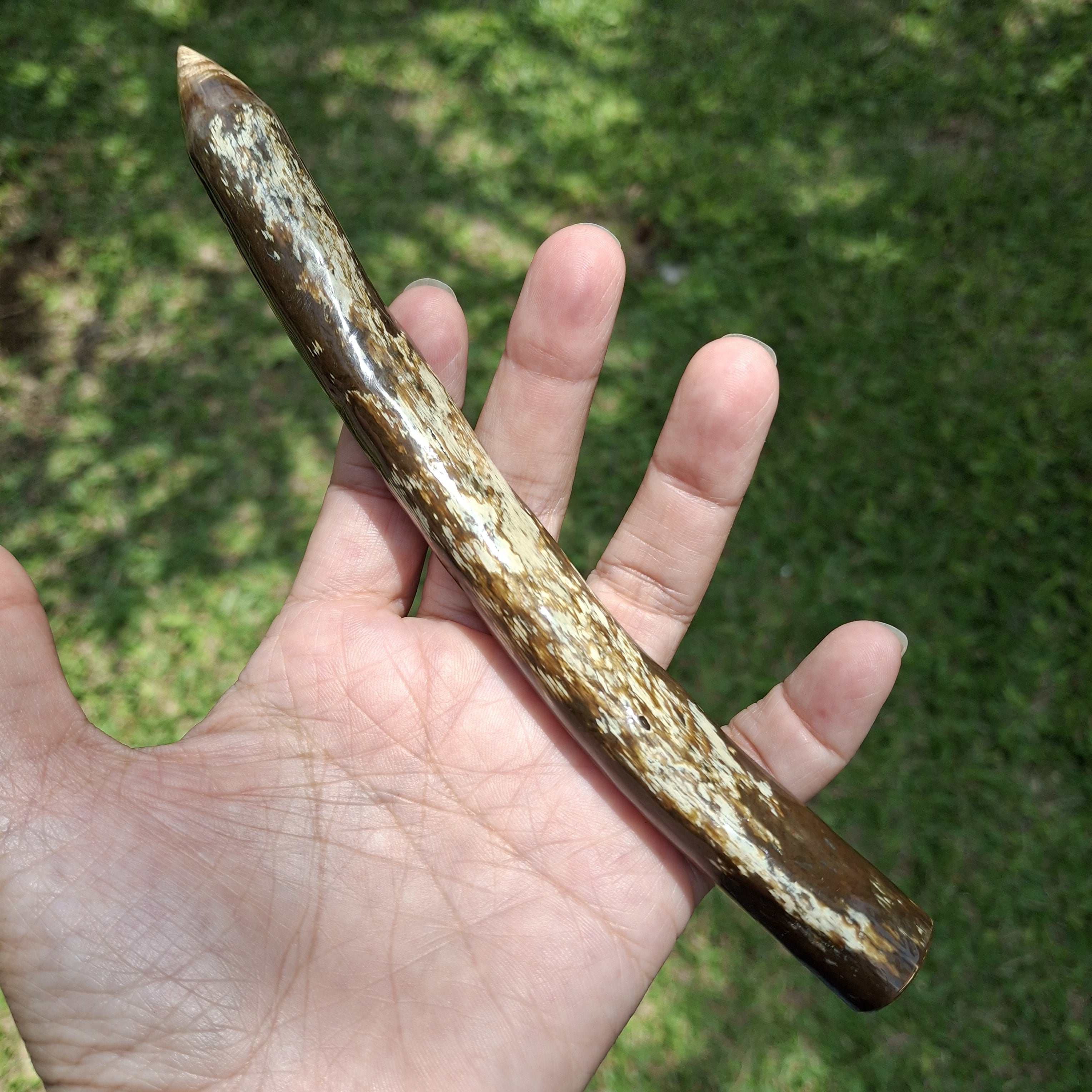 長年ウリやケオンの取り扱いをしているお店で買い付けたインドネシア産グリーンウリ·ワンド(スティック)。ヒーリング効果が強く、持ち主のリスク回避を手助ける存在として、インドネシアでも人気の高いスピリチュアルなアイテム!!色味はグリーンではなくカーキ色に近い色をしていますが、こちらは少し茶系色。自然に作り上げられた独特な模様が特徴的。