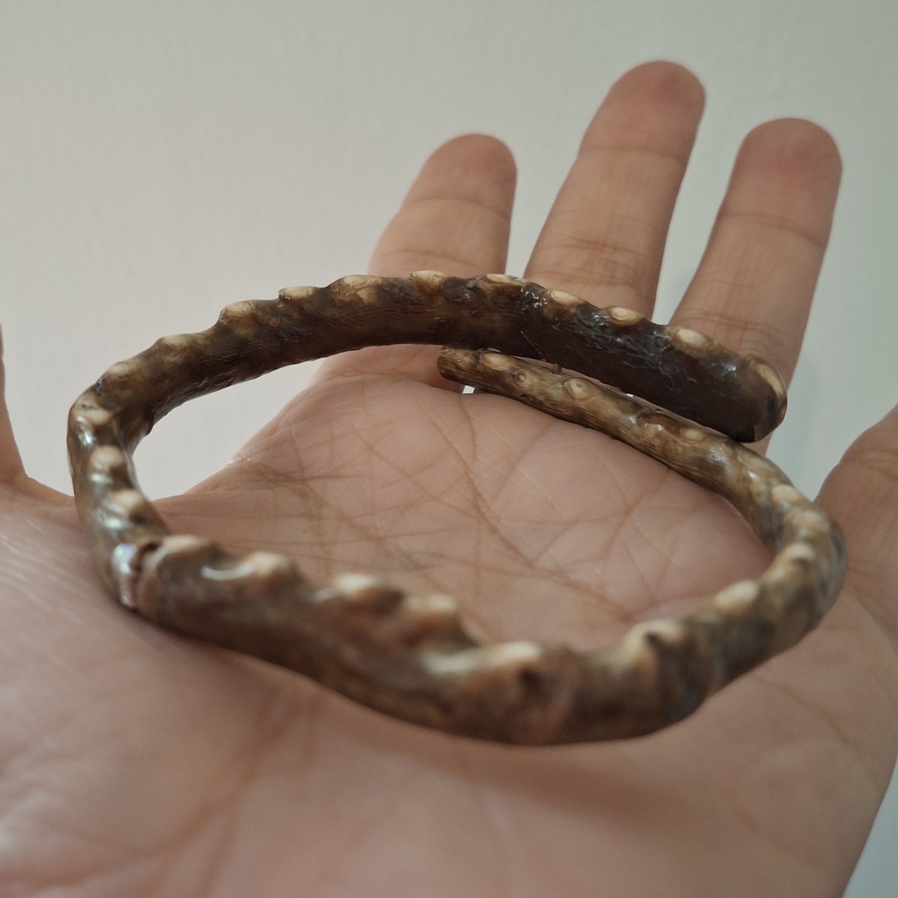 インドネシア産のグリーンウリ(ウリ ガダン ヌサ ドラゴン)のオープンタイプのバングルをご紹介。ヒーリング効果が強く、持ち主のリスク回避を手助ける存在として、インドネシアでも人気の高いスピリチュアルなアイテムです!!色味はグリーンではなくカーキ色に近い色をしています。