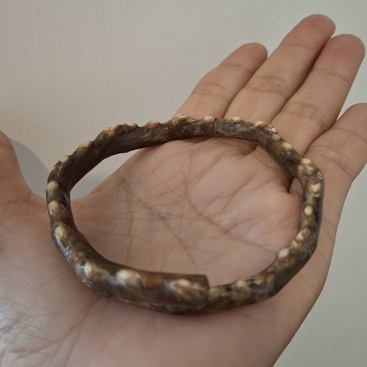インドネシア産のグリーンウリ(ウリ ガダン ヌサ ドラゴン)のオープンタイプのバングルをご紹介。ヒーリング効果が強く、持ち主のリスク回避を手助ける存在として、インドネシアでも人気の高いスピリチュアルなアイテムです!!色味はグリーンではなくカーキ色に近い色をしています。