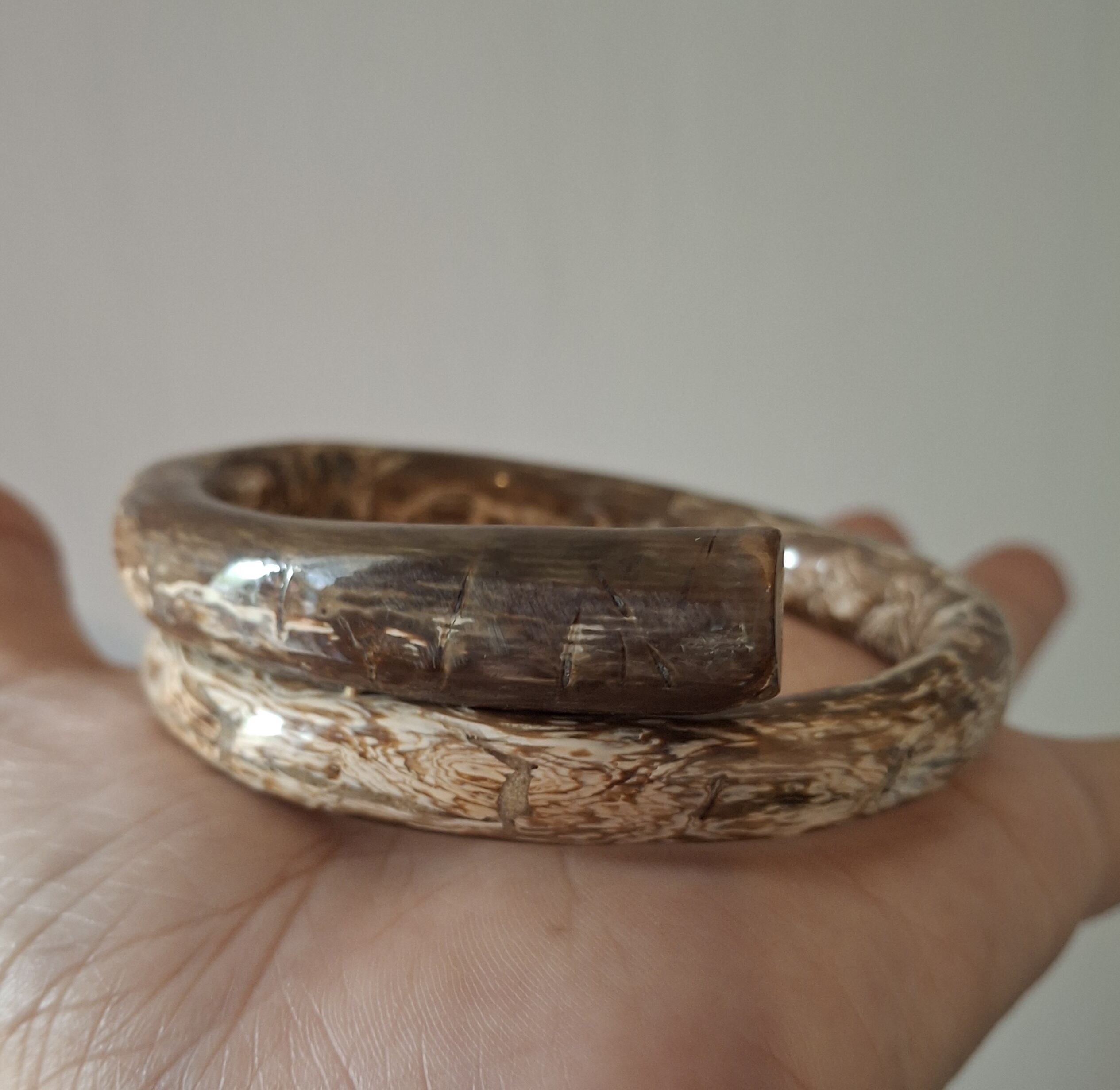 インドネシア産グリーンウリのオープンタイプのバングル。自然に作り上げられた独特な模様が特徴的。グリーンウリはヒーリング効果が強く、持ち主のリスク回避を手助ける存在として、インドネシアでも人気の高いスピリチュアルなアイテムです!!