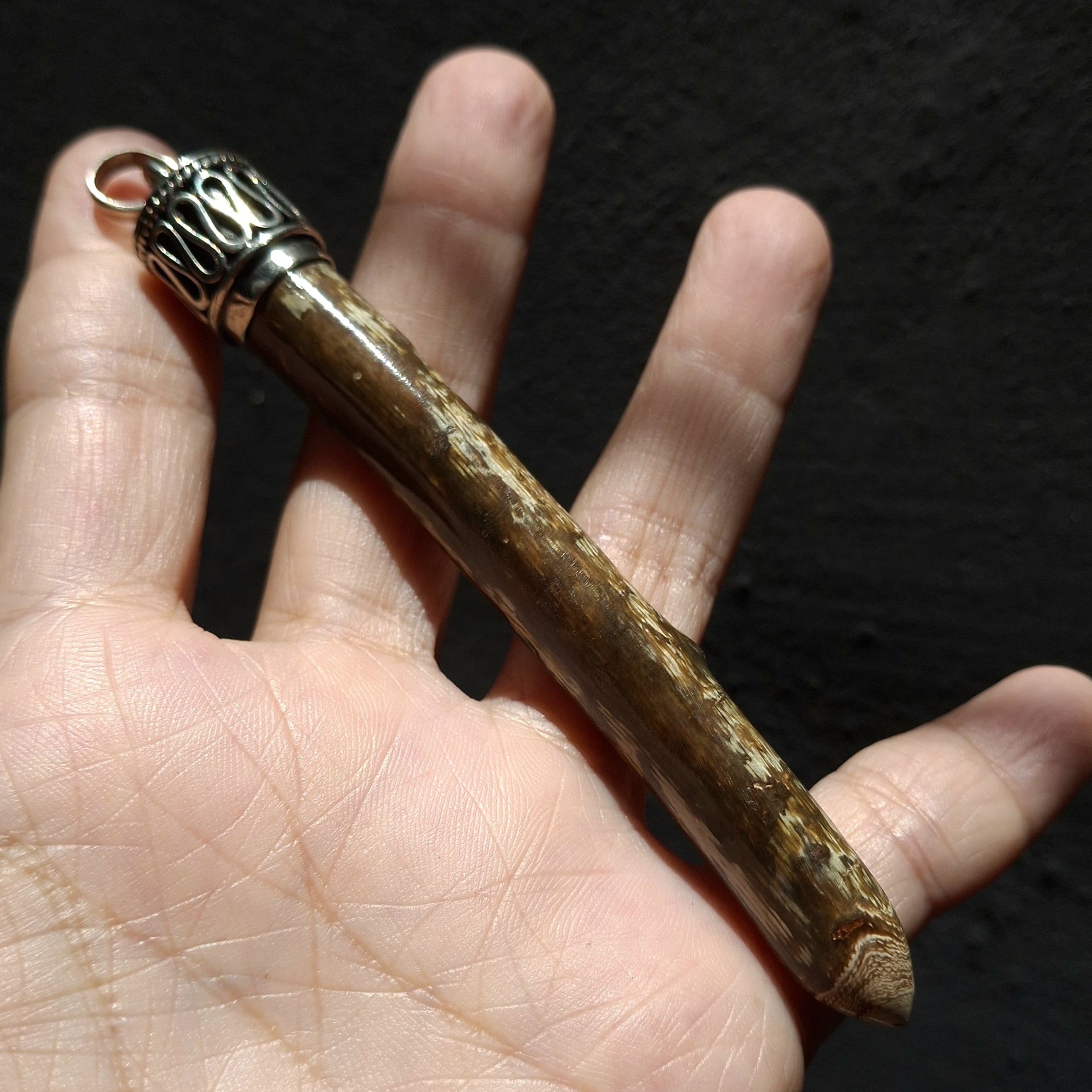 グリーンウリのショートワンド。ヒーリング効果が強く、持ち主のリスク回避を手助ける存在として、インドネシアでも人気の高いスピリチュアルなアイテム!!色味はグリーンではなくカーキ色に近い色をしていますが、こちらは少し茶系色で自然に作り上げられた独特な模様が特徴的。こちらにリングホルダーを付ければ鞄に付けられ、紐やチェーンを付ければネックレスにできます。これなら必要な時にいつでも振り回して頂けます♫