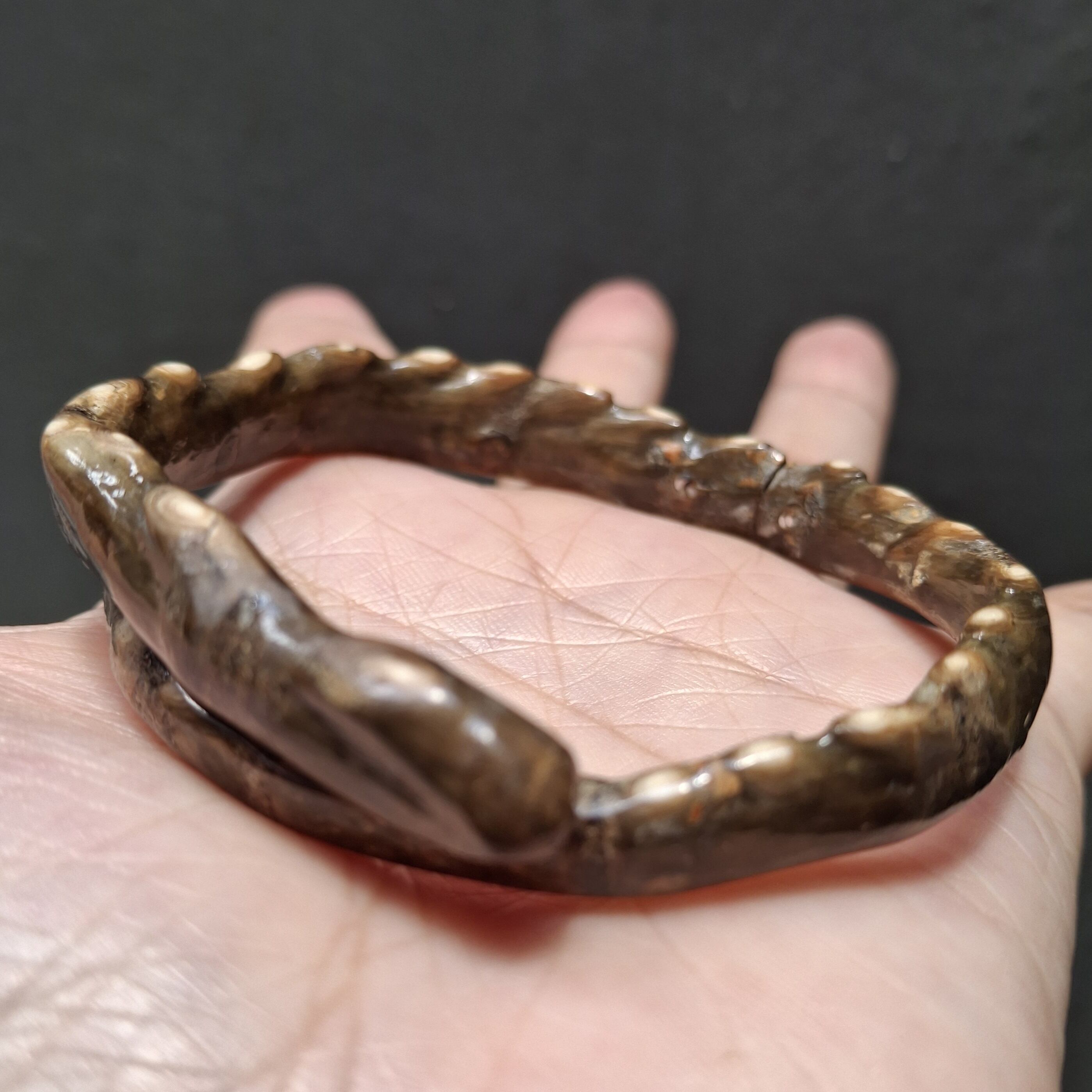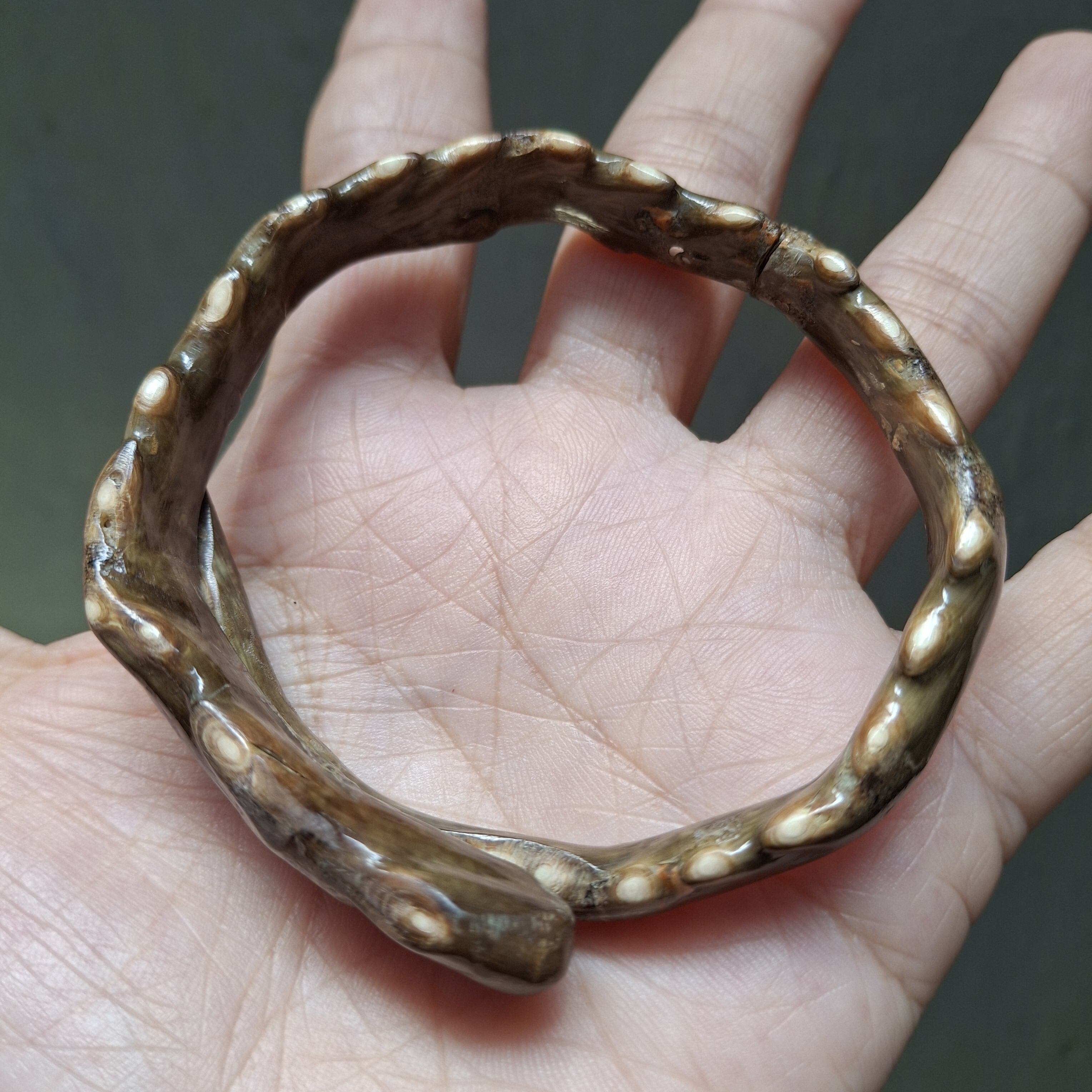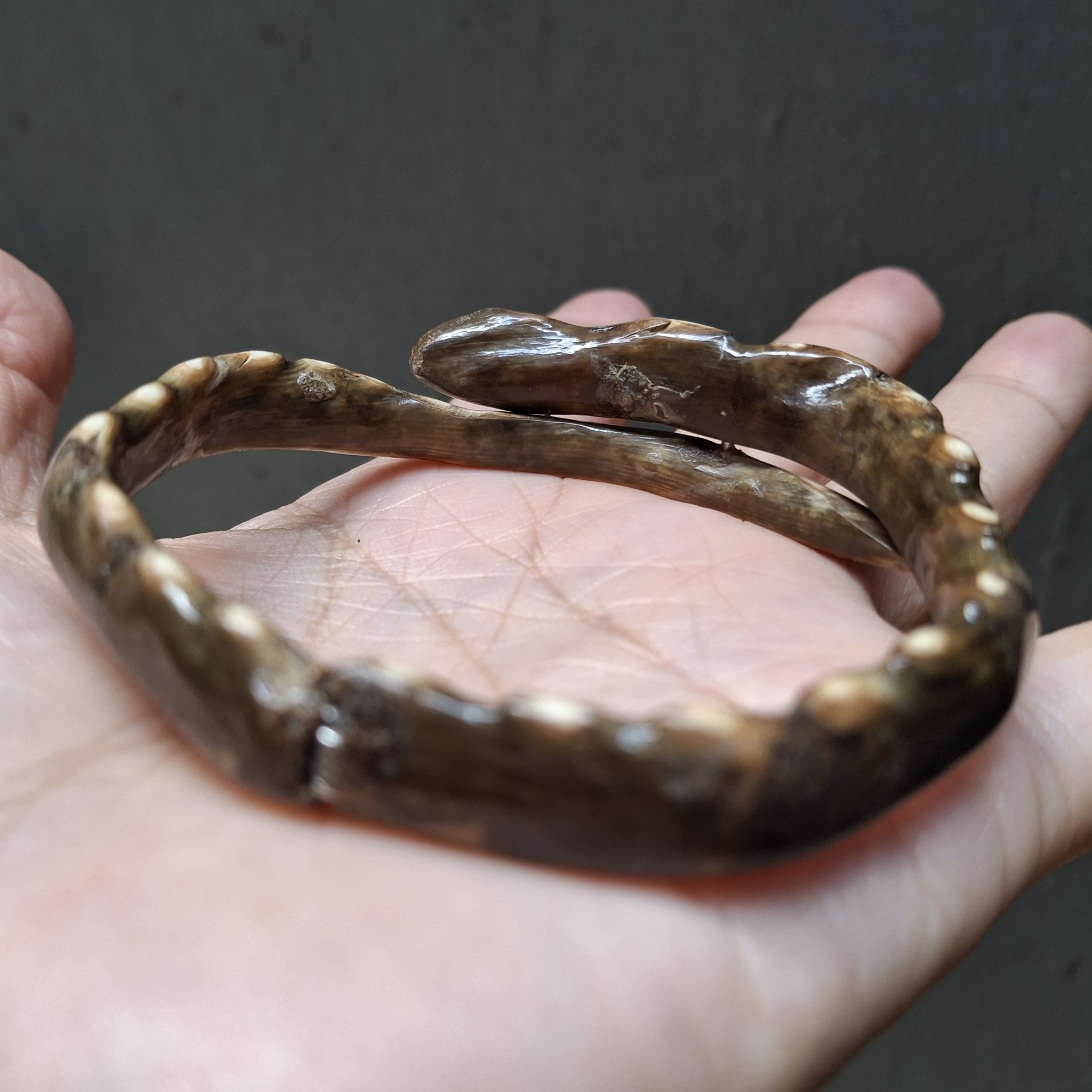 インドネシア産のグリーンウリ(ウリ ガダン ヌサ ドラゴン)のオープンタイプのバングルをご紹介。ヒーリング効果が強く、持ち主のリスク回避を手助ける存在として、インドネシアでも人気の高いスピリチュアルなアイテムです!!色味はグリーンではなくカーキ色に近い色をしています。