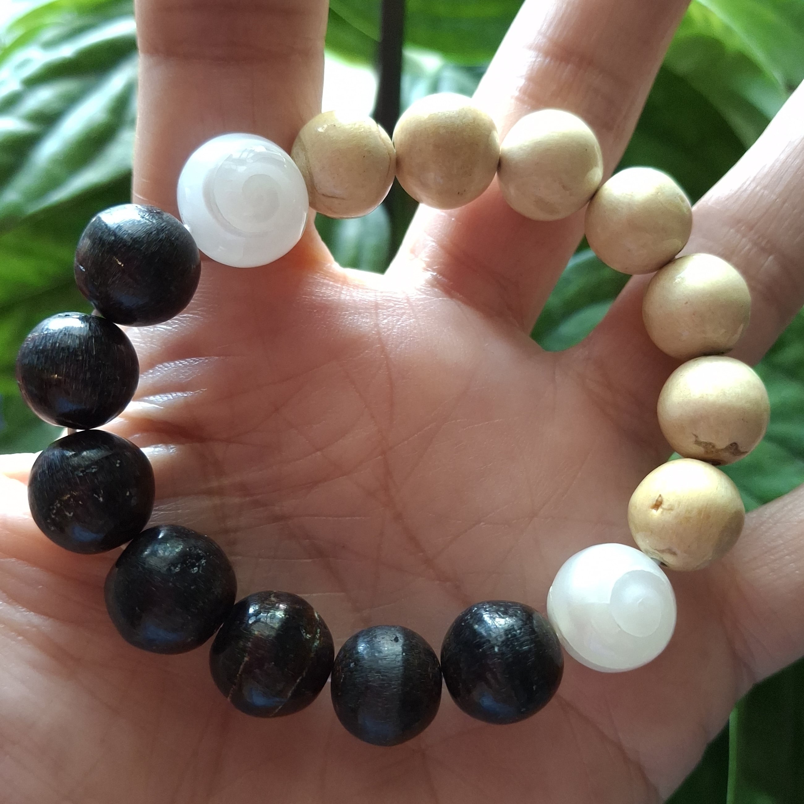 特価★送料無料★12.5mm玉渦巻きケオンブレスレット★ブラックウリ&ホワイトケオン★邪気祓い★幸運への導き★入魂儀式済み