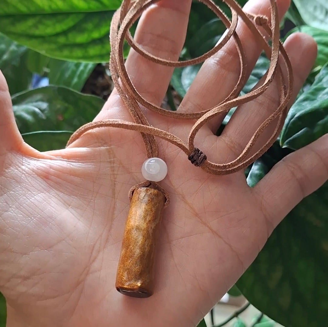 金色に輝く少し太めのマスウリ(ゴールドウリ)と約9mmの渦巻きケオンビーズを組み合わせたスエード紐ネックレス♫ケオンは小粒ですが渦巻きがはっきりしていて、凄く綺麗です✨