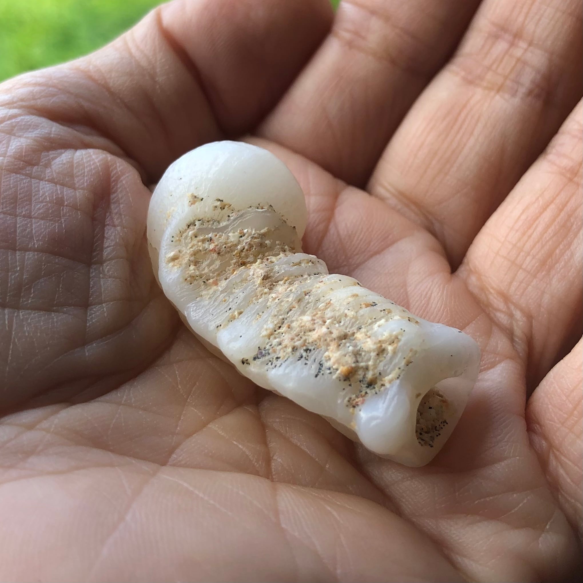 長い年月をかけて自然に研磨されたケオン。写真で見てお分かりになると思いますが、荒波に揉まれ、砂が付着していたりする跡や自然に研磨されているところを見ると、長い時を経てから海岸に現れたんだと思います。とても神秘的ですね♡