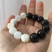 芯ケオンビーズ約13mmとブラックウリビーズ約15mmの大玉ビーズを使ったブレスレット。大玉なのでとても迫力がありますね♡