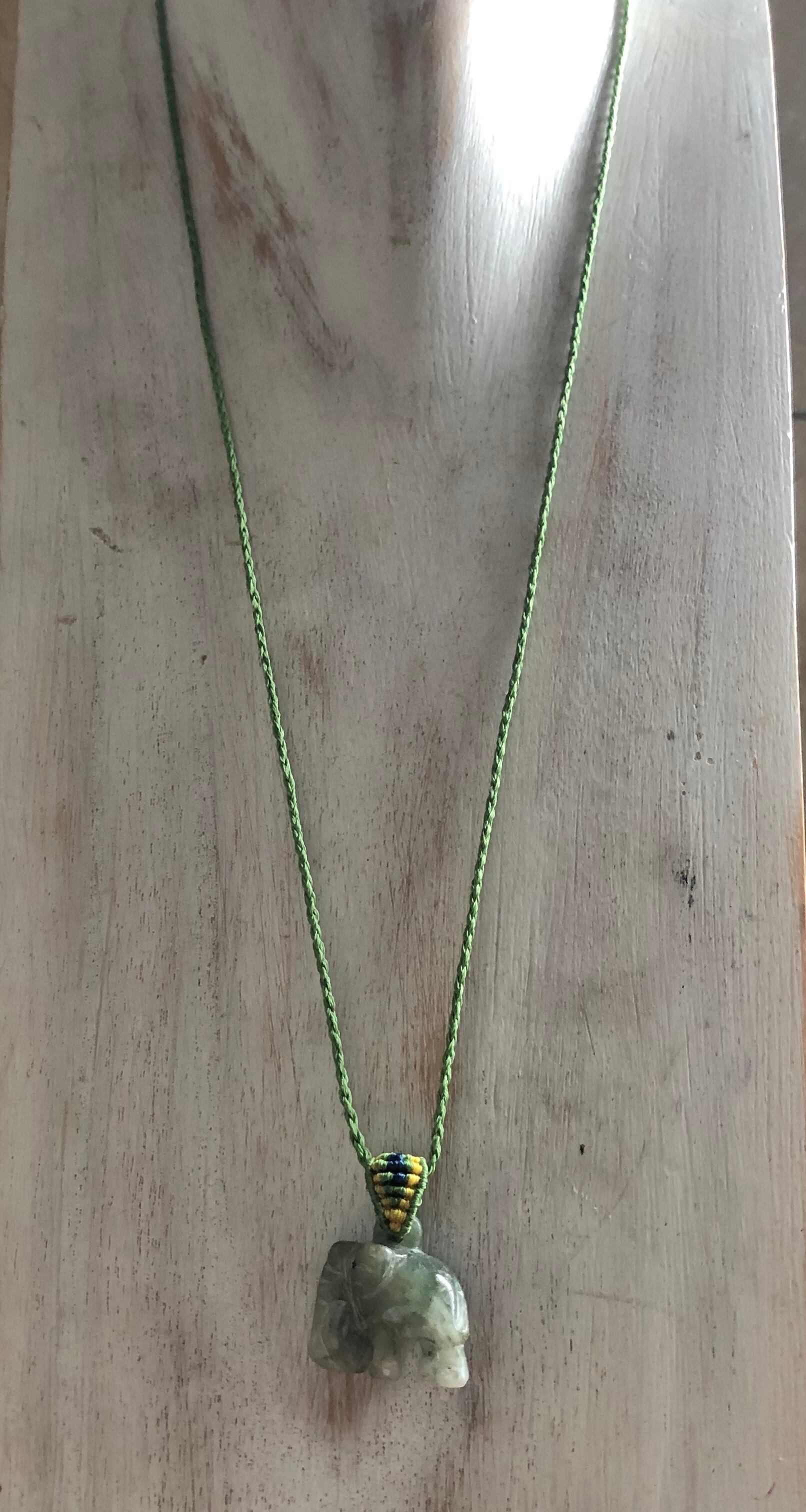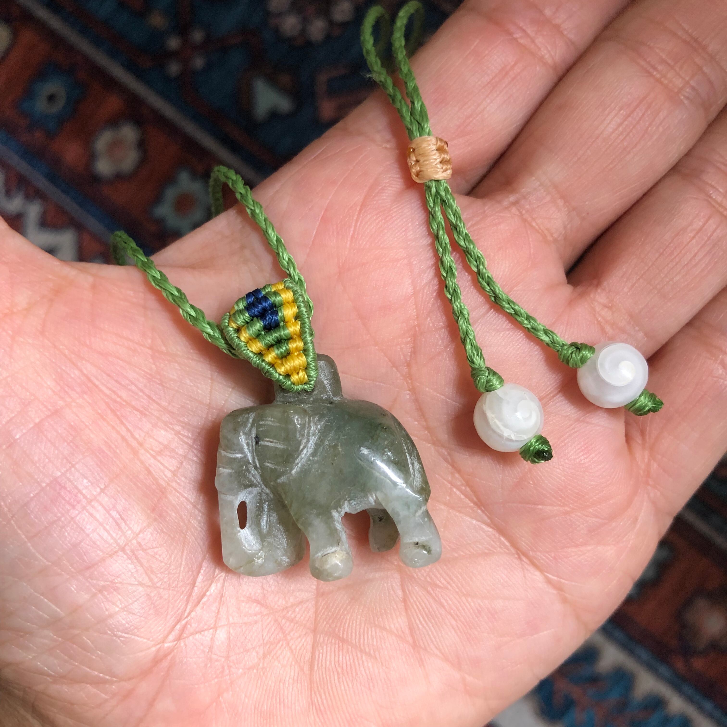 ✨翡翠の象さん&スパイラルケオ♡マクラメ編みネックレス✨