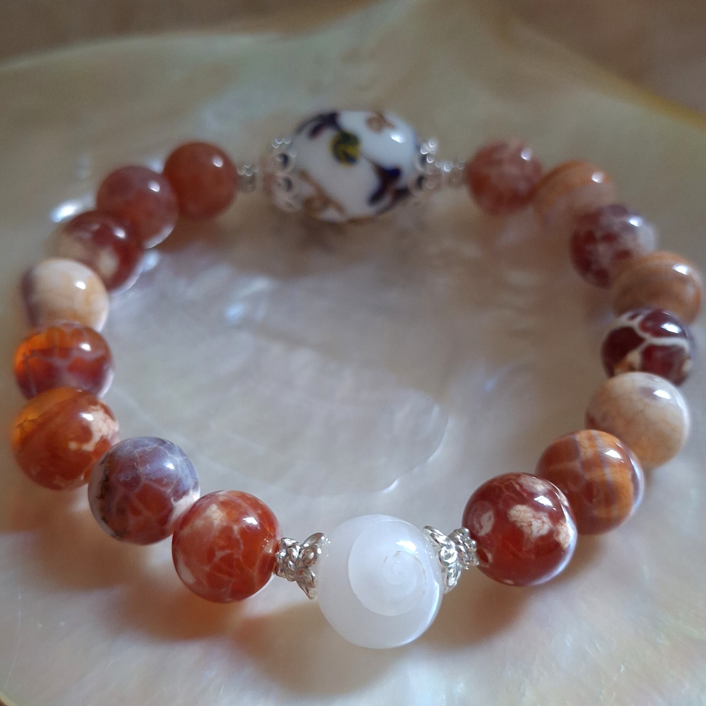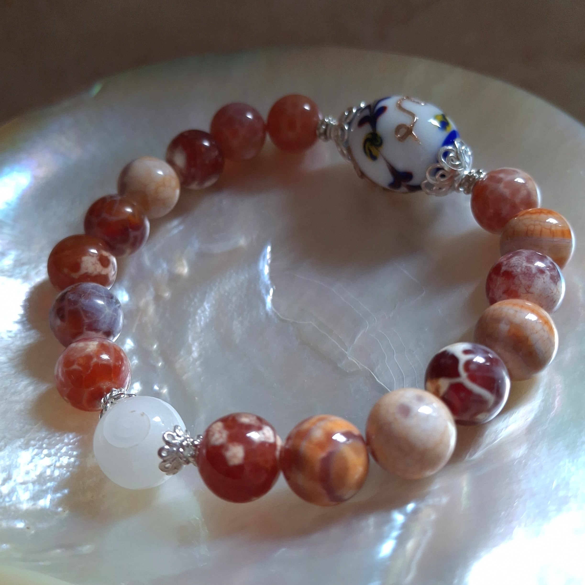 こちらオーストラリアで買い付けた大玉のとんぼ玉とドラゴンアゲートを組み合わせ、その中央にひと粒のスパイラルケオンビーズをあしらった、とても素敵なブレスレット✨